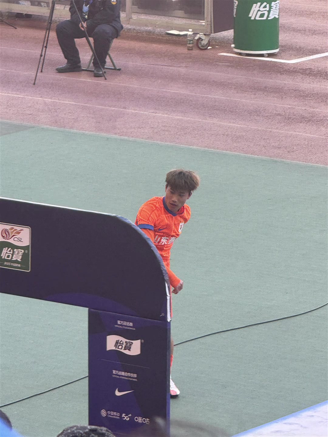 山東泰山隊(duì)賽前訓(xùn)練,高準(zhǔn)翼摟著黃政宇比耶拍照